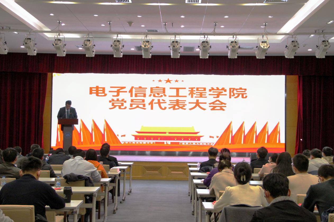 11月12日下午,中国共产党威尼斯9499登录入口电子信息工程学院党员代表大会在如心会议中心大报告厅召开。本次党员代表大会主要有三项议程,一是听取学院党委工作报告,二是选举学院新一届党委委员,三是选举学校第十七次党代会党员代表。共有78名师生党员代表参加会议。