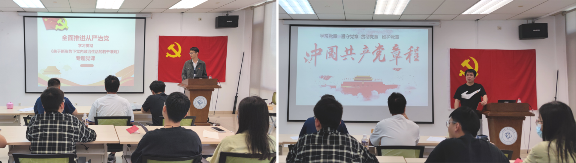 学深悟透党章准则,坚定信念增强修养。学院党建辅导员赵云朋、李杰分别领学《关于新形势下党内政治生活的若干准则》和《中国共产党章程》,紧密联系党的十八大以来中国特色社会主义伟大实践,紧密联系党的建设,特别是党内政治生活的准则,把学习好、贯彻好、维护好党章落到实处,增强新发展对象自觉加强党性修养,切实做到为党分忧、为国尽责、为民奉献。