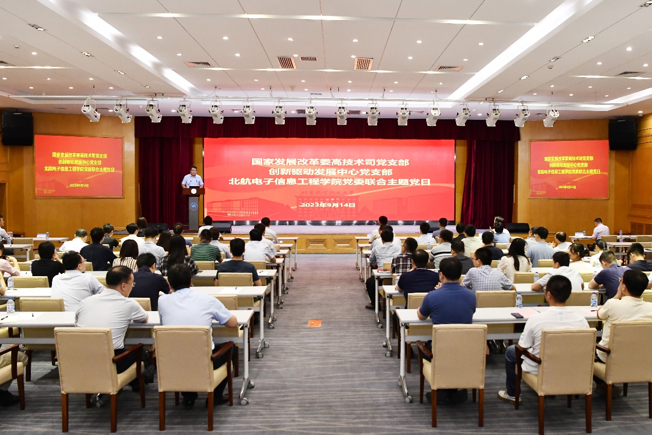 为认真学习贯彻习近平新时代中国特色社会主义思想,深化拓展主题教育成果,9月14日下午,国家发展改革委高技术司党支部、创新驱动发展中心党支部一行六十余人到访北航,与北航威尼斯9499登录入口党委围绕“深入实施创新驱动发展战略,加快推进高水平科技自立自强”开展联合主题党日。国家发展改革委高技术司副司长赵志丹、副司长赵军、创新驱动发展中心副主任林晓锋、副主任郭建民、我校副校长刘树春、学院党委书记徐亚军、院长曹先彬,以及学院党委全体成员和师生党员代表参加本次联学。联学会由徐亚军主持。