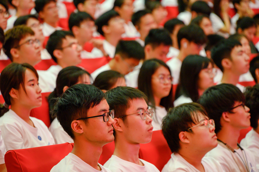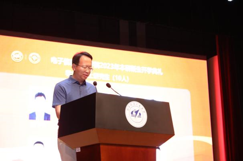 曹先彬代表学院对665名新电子人表示热烈的欢迎和衷心的祝贺,与全体师生一同回顾学院“为党育人、为国育才”的65年办学历程,指出学院取得的一系列成绩,正是源于学院始终坚持“一切围绕学生”,不断深化人才培养。
