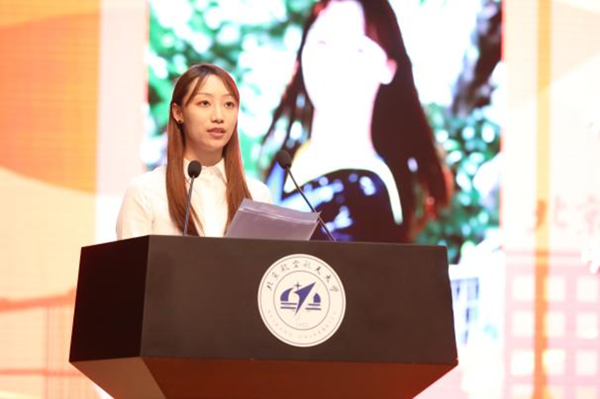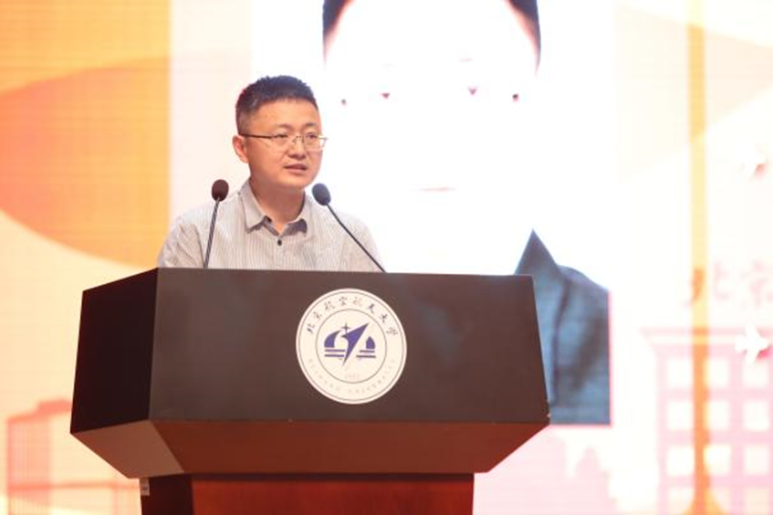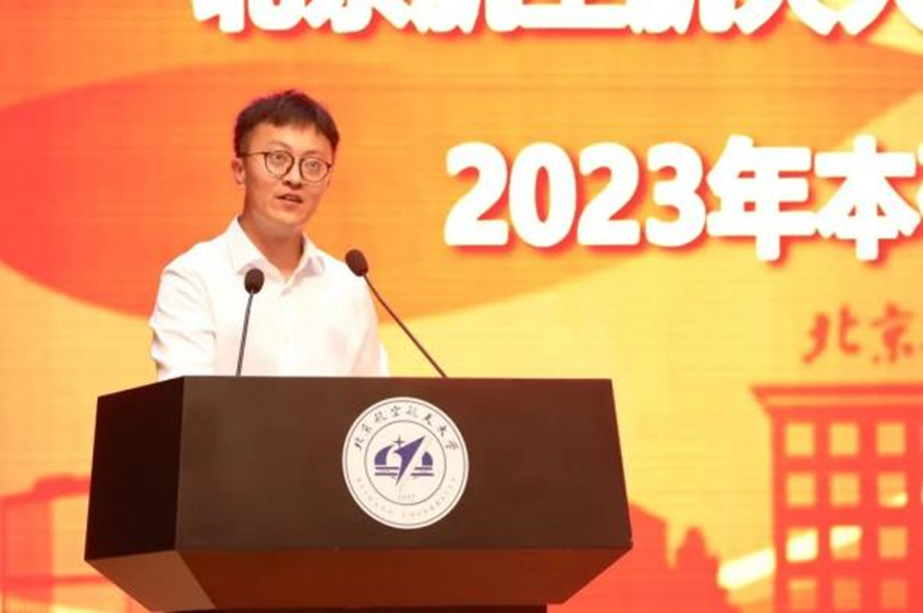 徐迈代表学院全体教师欢迎各位新同学,他深情回顾了在北航14年学习工作历程,寄语全体新生以德为先,先立德而后树人,养成优秀的道德品质;追求真理、善于学习,掌握扎实的专业才能;脚踏实地,勇于实践、敢于创新,将理论与实践相结合。