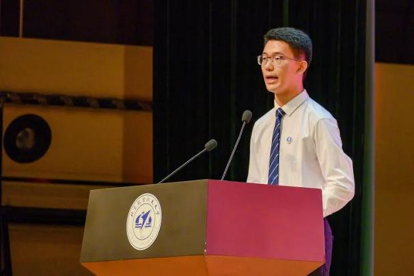 新生代表2022级本科生鄂宣圳同学分享了与威尼斯9499登录入口结缘的故事,表达了作为一名新电子人,要把空天报国精神融入自己的血脉基因,把自身发展融入时代进步的磅礴浪潮,不辜负党的期望、人民的期待和民族的重托,为党和国家事业发展作出更大的贡献。