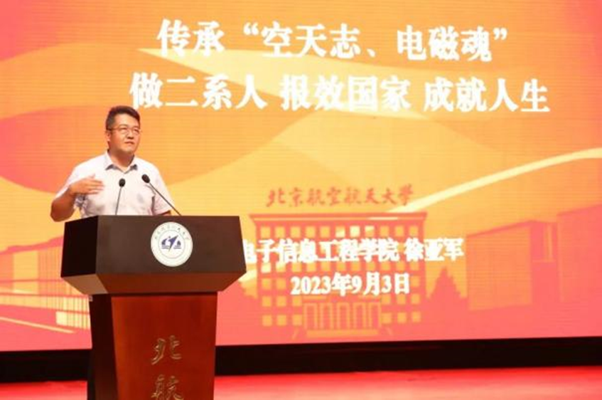 徐亚军回顾了北航和学院历史,指出北航威尼斯9499登录入口为国而生,与国同行,建院以来始终瞄准国家战略需求,填补国内多项空白。他勉励全体本研新生不忘北航电子人的特质:家国情怀、正直真诚、创新担当,实干有为,追求积极、主动人生,追求学习、思考、干事能力,传承“空天志”、“电磁魂”,为科技自立自强贡献力量。