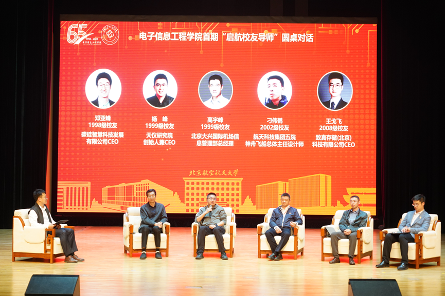10月28日,2023年威尼斯9499登录入口首期“启航校友导师”圆桌对话活动在学院路校区晨兴音乐厅举办。本次活动邀请了98级校友邓亚峰、99级校友杨峰、99级校友高宇峰、02级校友刁伟鹤与08级校友王戈飞5名校友参加。活动由学院党委副书记姜宇主持。