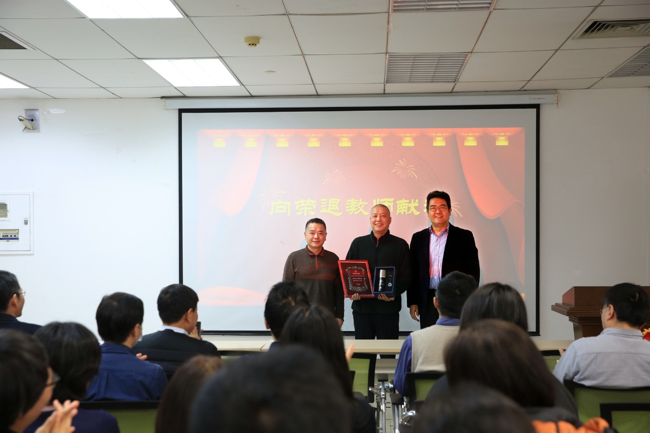 徐亚军书记和曹先彬院长为今年退休教师代表刘兴春老师颁奖,并代表学院对荣休教师致以衷心感谢。