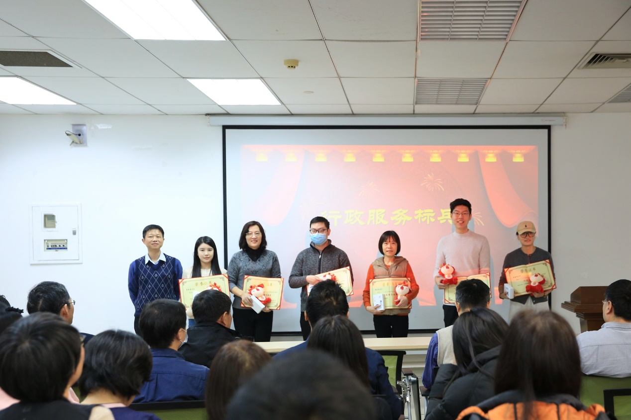 随后,学院领导班子成员共同为“本科教学标兵”、“研究生教学标兵”、“科研标兵”、“国际化工作标兵”、“保密安全标兵”、“行政服务标兵”、“本研辅导员标兵”、“学生科创指导教师标兵”获奖教师颁奖。