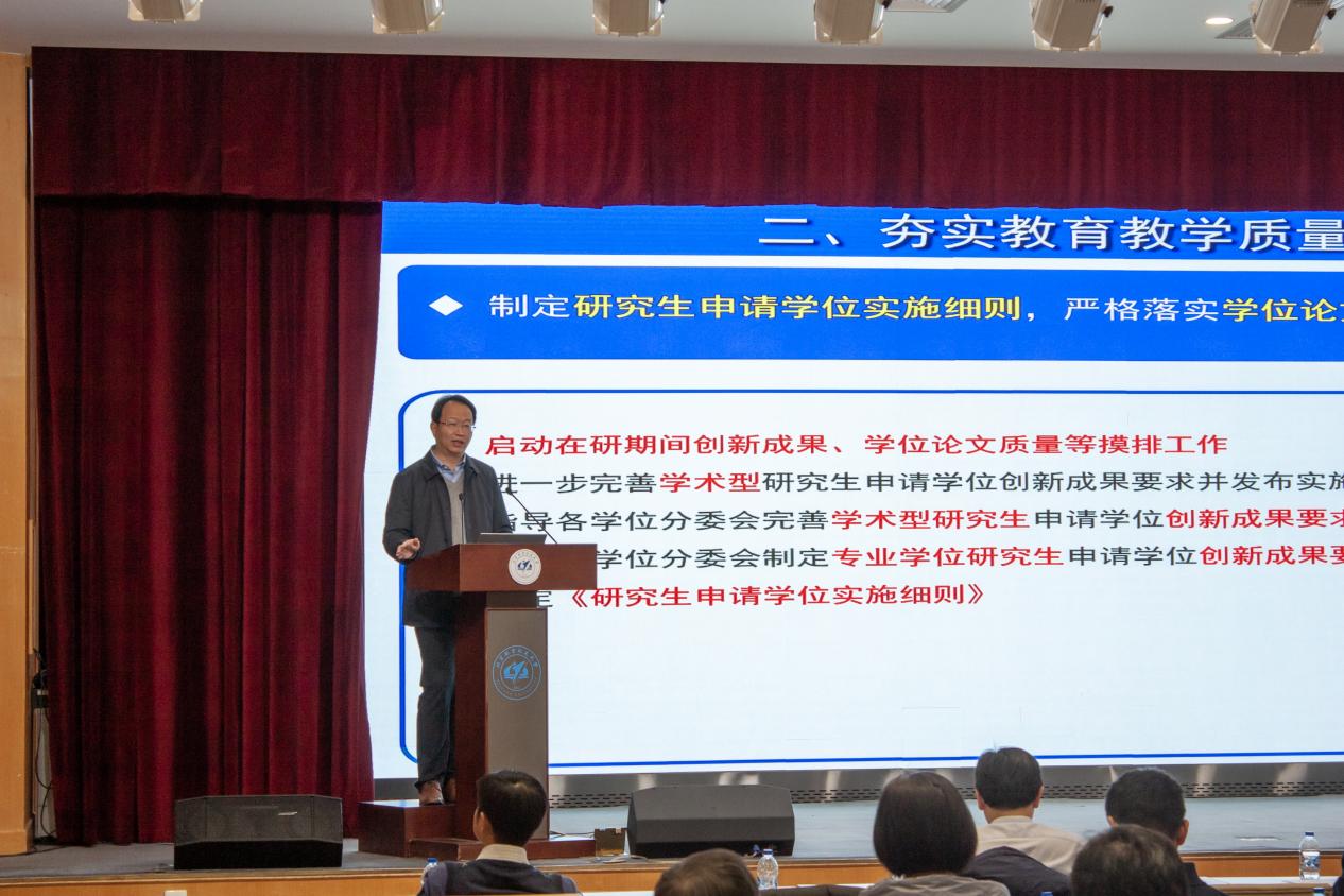 研究生教学副院长陈杰解读了学校研究生教育教学工作重点,宣贯了学院提升研究生培养质量的政策和举措。