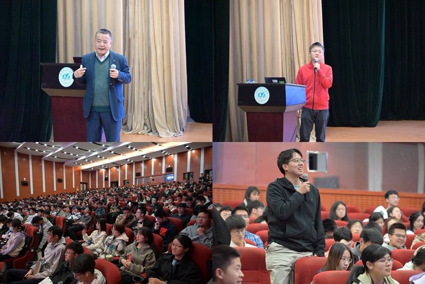 现场问答环节中,同学们踊跃举手,就学院课程安排、课业难度、多彩生活、就业情况等问题与两位老师进行了交流。