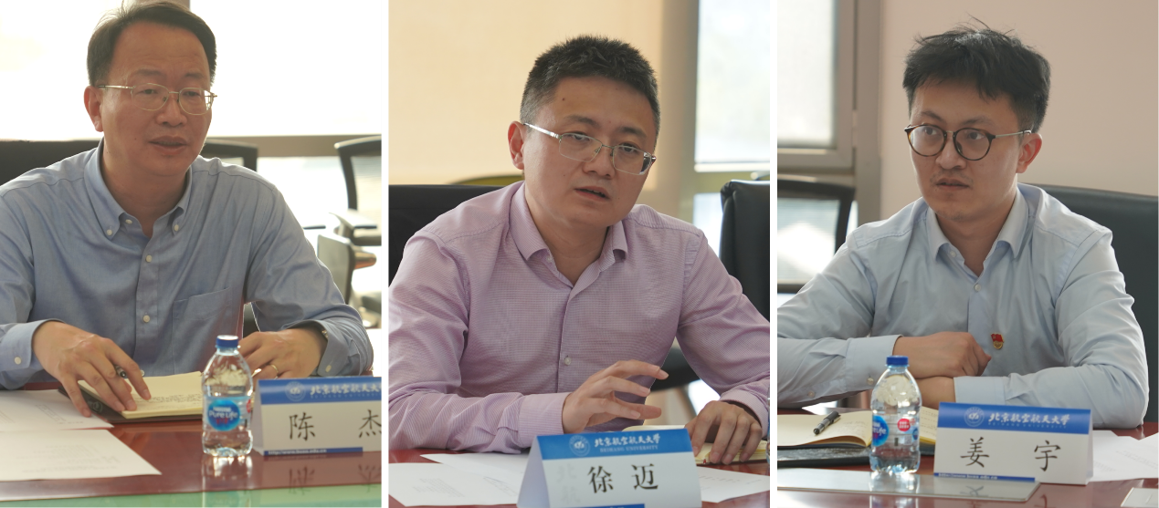 在交流讨论环节,学院教学副院长徐迈、研究生教学副院长陈杰、学院党委副书记姜宇分别就学生科技创新、学生综合评价、课程质量提升、研究生培养质量提升、学院思政工作特色等作了交流发言。