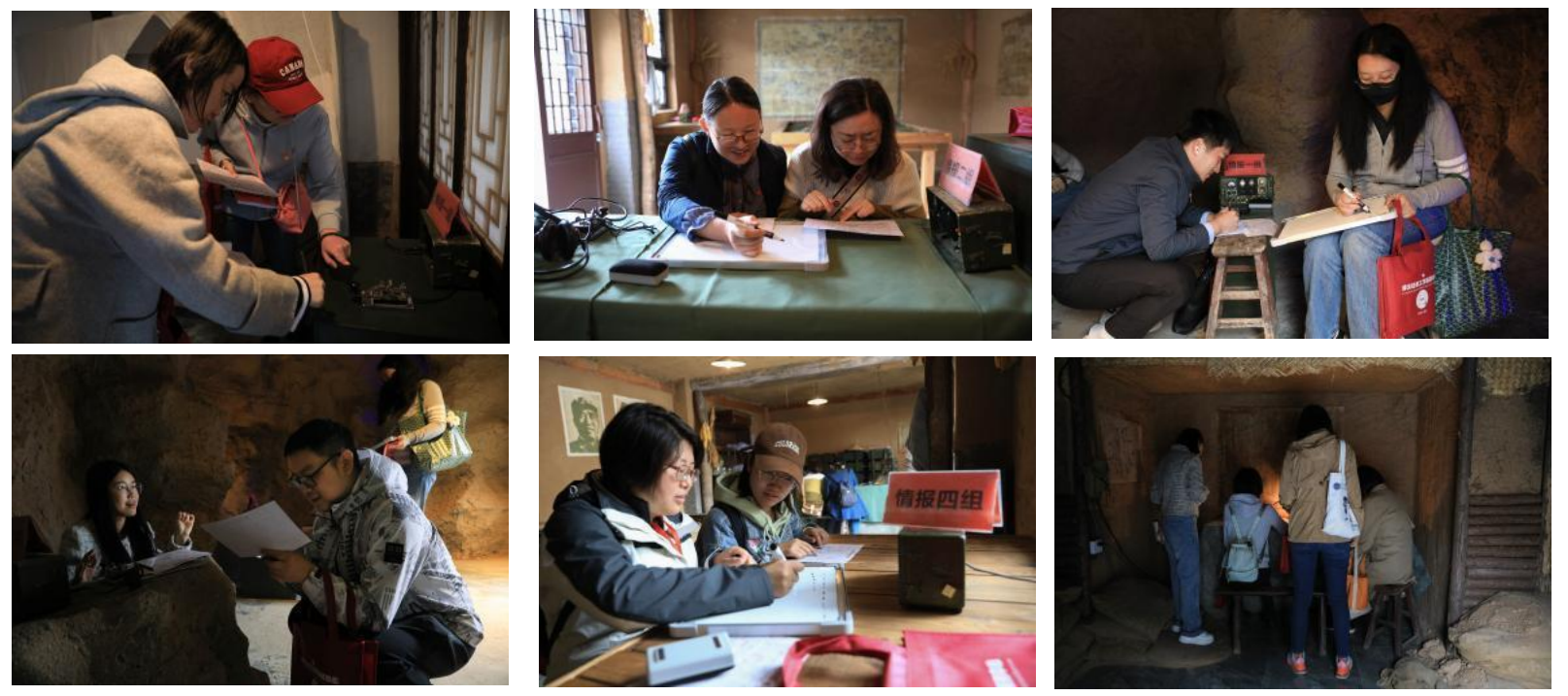 参观过程中,党员们通过“北平民宿”、“苏静山洞”、“根据地作战指挥中心”、“前线战场”四个场景,分为四组,亲身参与“收发报”的过程,身临其境的体验和感悟到隐蔽战线上革命先辈们的艰辛和初心。