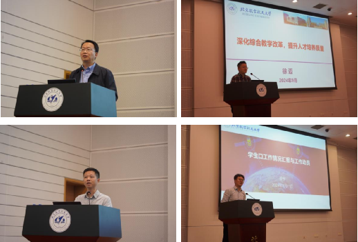 研究生教学副院长陈杰、本科教学副院长徐迈、党委副书记姜宇、行政副院长戴飞分别回顾了上半年学院在研究生教学、人才培养、学科建设、学生思政、师资队伍建设、科技创新等方面取得的成果及面临的问题和挑战,并详细阐述了学院综合改革的方案思路及下半年将实施的重点举措。