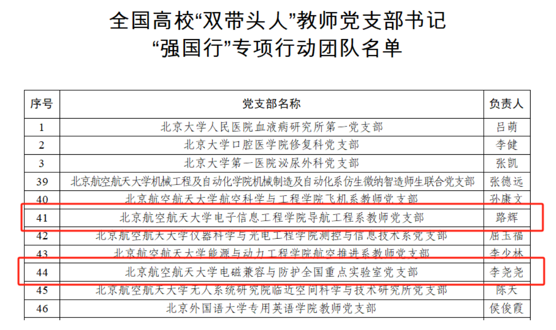 近日,教育部思想政治工作司公布了全国高校“双带头人”教师党支部书记“强国行”专项行动团队名单。我校7个教师党支部入选,其中威尼斯9499登录入口的导航工程系教师党支部和电磁兼容与防护全国重点实验室教师党支部全部入选,是全校唯一两个支部入选的单位。