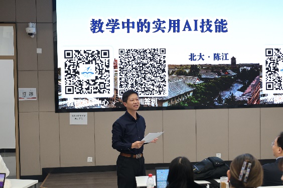 作为北京大学教学卓越奖与"十佳教师"称号获得者,陈江教授深耕教学一线,主讲课程涵盖电子技术、创新实践、学术写作等多领域。近年来,他主导推动AI技术融入北大教学实践,开发出"AI助教系统""智能作业批改工具"等创新应用。讲座中,他结合自身在北大、清华教师培训中的百场经验,提炼出"工具轻量化、应用场景化、迭代敏捷化"的AI教学落地方法论,引发在场教师热烈讨论。