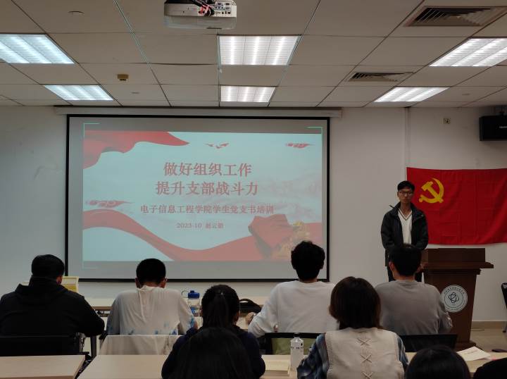 为深入学习贯彻习近平新时代中国特色社会主义思想,充分发挥学生基层党组织在科研中的战斗堡垒作用,全面提升学生党支部书记做好新时代基层党建和思想政治工作的能力和水平电子信息工程学院于20231025开展新上任学生党支部书记培训。