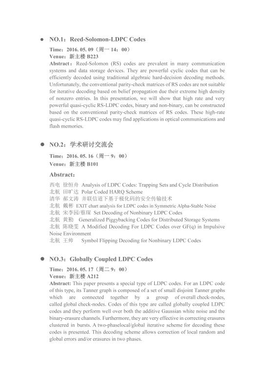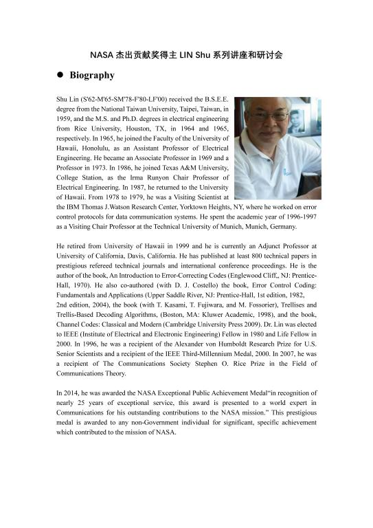 NASA杰出贡献奖得主LIN Shu系列讲座和研讨会.doc