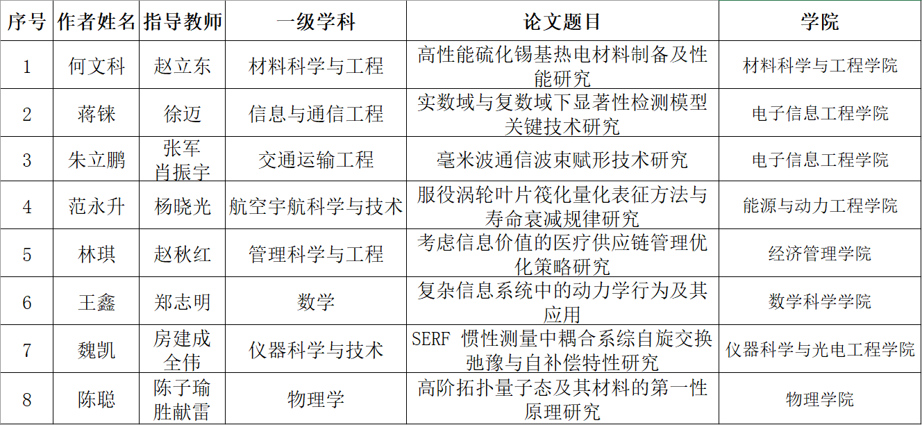 学院始终坚持以服务国家为最高追求,传承“空天报国”红色基因,落实立德树人根本任务,在人才培养中实现科技创新,在科技创新中培养优秀人才,获评2022年研究生十佳学术创新成果奖1项(博士生戴伟斌,导师张军院士)、十佳研究生2人(博士生李天一,导师徐迈教授;硕士生汪寅鹏,导师任强副教授)。